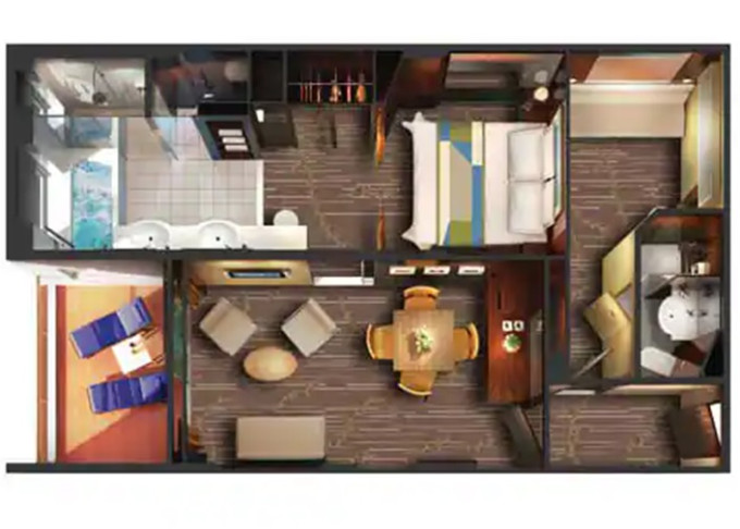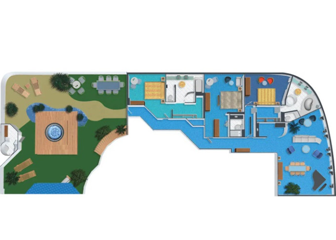 | S1 - Garden Villa - 3 ložnice 622 m² / balkon 414 m². Vířivka. Výhody Suite. 14. paluba - střed. Max 7 osob. | 263 213 Kč 131 606 Kč za osobu |