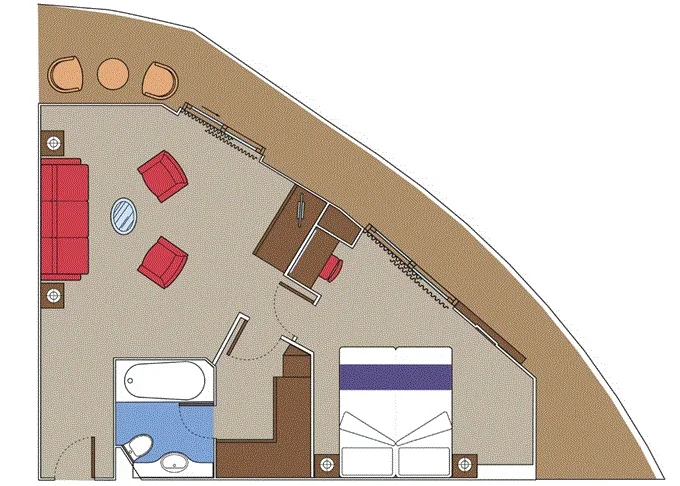 - ubytování v plně vybavené kajutě: vlastní koupelna se sprchou a WC, interaktivní TV, telefon, trezor, vysoušeč vlasů, regulovatelná klimatizace, minibar (za poplatek), Wi-fi (za poplatek)