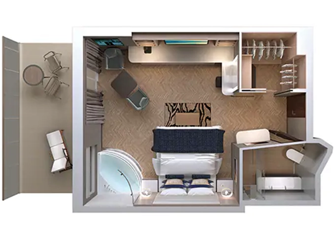 | HI - The Haven Penthouse 39-40 m² / balkon 7-8 m². Výhody The Haven. 15. paluba - vzadu. Max 2 osoby. | 154 561 Kč 77 280 Kč za osobu | ||