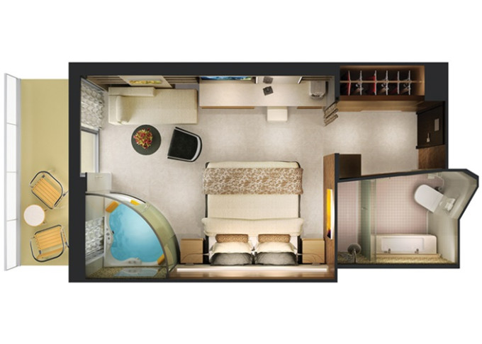 | H6 - The Haven Family Villa - 2 ložnice 50-51 m² / balkon 4-5 m². Výhody The Haven. 15/16. paluba - vpředu. Max 5-6 osob. | 346 888 Kč 173 444 Kč za osobu |