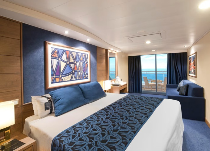 Kajuta s balkónem: 17-23 m², kajuta s manželskou postelí (na požádání 2 oddělené postele) a rozkládací pohovka. Klimatizace, koupelna se sprchou nebo vanou a WC, toaletní stolek, prostorná skříň, interaktivní TV, telefon, minibar, sejf, vysoušeč vlasů. Balkony se stolkem a židlemi.