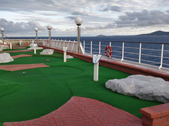 - sportovní aktivity na otevřených palubách (jogging, basketbal, fotbal, tenis), bazény a lehátka