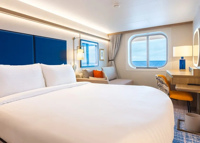 | L5 - Kajuta s oknem Panoramic Ocean View 24 m². Celoplošní neotevíratelné okno, výhled na moře. 14. paluba vpředu. Max 3 osoby. | 128 883 Kč 128 883 Kč za osobu | ||