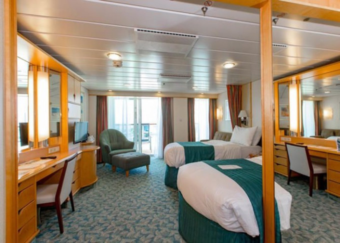 | VP - Ocean View Panoramic Suite (bez balkonu) 38 m². Panoramatické neotevíratelné okna. Výhody Royal Suite Class. 12. paluba. Max 6 osob. | 134 227 Kč 134 227 Kč za osobu | ||