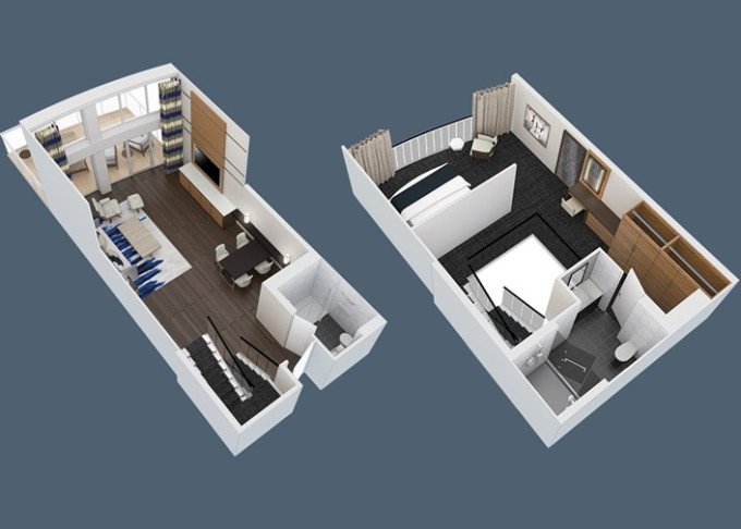 | GL - Grand Loft Suite s balkonem 65 m² / balkon 20 m². Výhody Royal Suite Class. 2-podlažní apartmán. 15. paluba. Max 4 osoby. | 141 369 Kč 141 369 Kč za osobu | ||