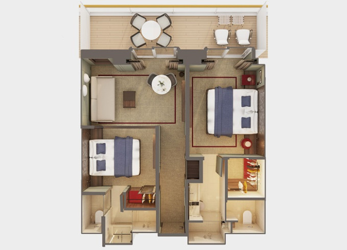 | H6 - The Haven Family Villa s velkým balkónem 44 m² (2 ložnice) / balkón 13-18 m².13.-15. paluba. Max 6 osob. Výhody The Haven. | 182 286 Kč 91 143 Kč za osobu | ||