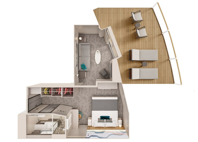 | H5 - Apartmá The Haven Owner's Suite s velkým balkónem 40-45 m² / balkón 10-12 m².12. paluba, Max 4 osoby. Výhody The Haven | 192 527 Kč 96 263 Kč za osobu | ||