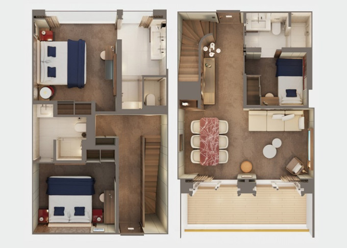 | H8 - Apartmá The Heaven Duplex Suita s velkým balkónem Dvoupodlažní apartmá. 74 m² / balkón 13 m².15/16. paluba. Max 6 osob. Výhody The Haven. | 266 460 Kč 133 230 Kč za osobu | ||