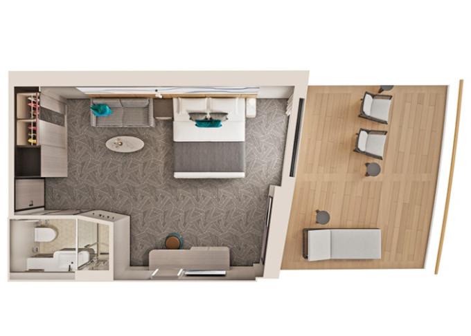 | MA - Club Suite s balkónem 22 - 27 m² / balkón 4-5 m². 9. - 11. paluba Max 2 osoby. Výhody Club. | 72 135 Kč 36 068 Kč za osobu | ||