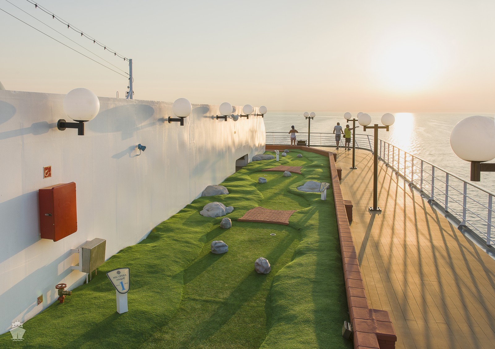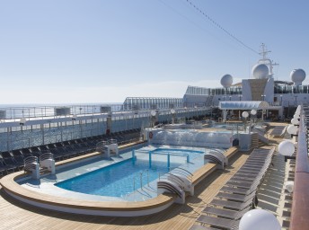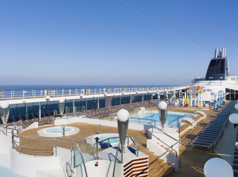 - sportovní aktivity na otevřených palubách (jogging, basketbal, fotbal, tenis), bazény a lehátka