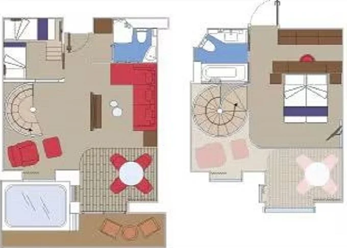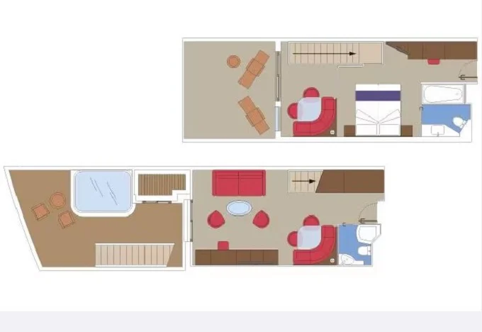 | YJD - Yacht Club Duplex Suite s vířivkou 46 m² + balkón 30 m². Vířivka. 2 podlaží, šatník, 2 koupelny (1 s vanou). Max 4 osoby. 16. paluba. Cenový model MSC Yacht Club. Easy package v ceně | 233 040 Kč 233 040 Kč za osobu |