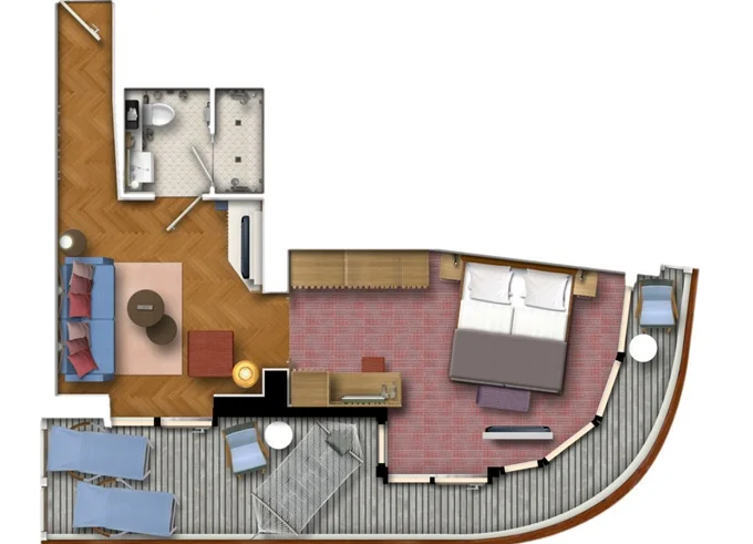 | JBAO - Junior Suite s balkonem 26 m² + balkon 7 m² se stolem. . paluba. Max 4 osoby. Výhody Junior Suite. | 369 617 Kč 184 809 Kč za osobu | ||