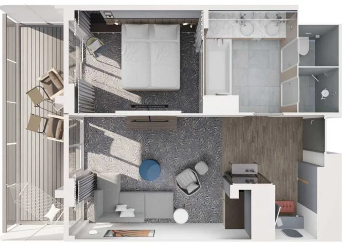 | JKCO - Junior Suite s balkonem C 26 m² + balkon 7 m² se židlemi a podnožkami. 7. paluba. Max 4 osoby. Výhody Junior Suite. | 178 639 Kč 178 639 Kč za osobu | ||