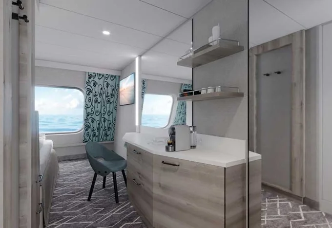 | SKBO - Fernweh Suite kat. B 28-38 m² + balkon 34 m² se stolem, lehátky a houpací sítí. 14. paluba. Max 4 osoby. Výhody Suite. | 284 694 Kč 142 347 Kč za osobu | ||