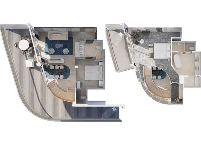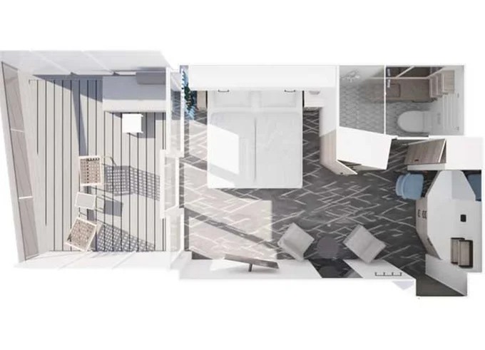 | VKPO - Kajuta s terasou Premium 30 m² + balkon 35 m² se židlemi, lehátky a houpací sítí. 15. paluba. Max 2 osoby. | 139 974 Kč 69 987 Kč za osobu | ||