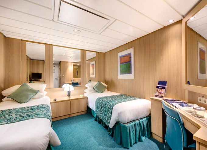 - ubytování v plně vybavené kajutě: vlastní koupelna se sprchou a WC, interaktivní TV, telefon, trezor, vysoušeč vlasů, regulovatelná klimatizace, minibar (za poplatek), Wi-fi (za poplatek)