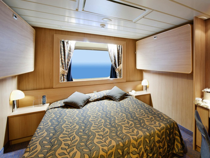 Kajuta oknem: 12 - 13 m² (Family 22m²), kajuta s manželskou postelí (na požádání 2 oddělené postele) a 1-2 vyklápěcí horní lůžka. Klimatizace, koupelna se sprchou a WC, toaletní stolek, skříň, interaktivní TV, minibar, sejf, telefon, vysoušeč vlasů, neotevíratelné okno. Některé kajuty v kategorii venkovní Bella a Junior Ocean mají omezený výhled.