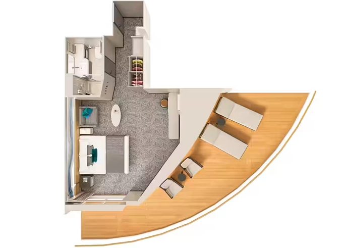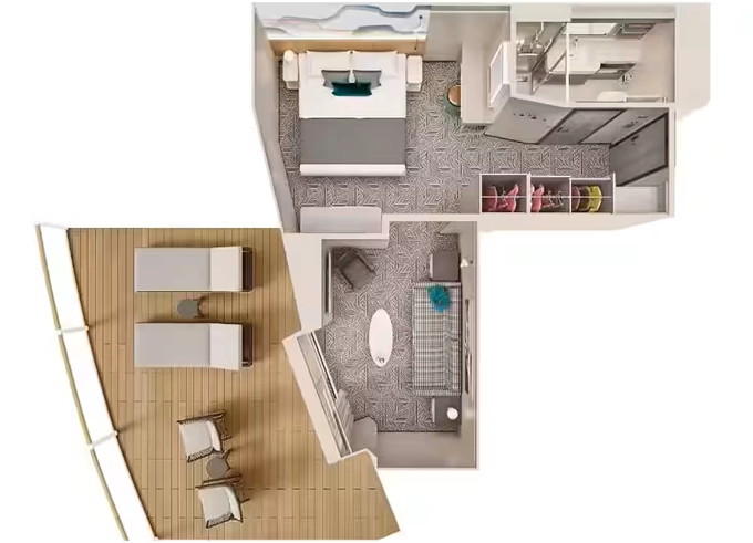 | H5 - Apartmá The Haven Owner's Suite s velkým balkónem 40-45 m² / balkón 10-12 m². 12. paluba, Max 4 osoby. Výhody The Haven | 593 533 Kč 296 767 Kč za osobu | ||