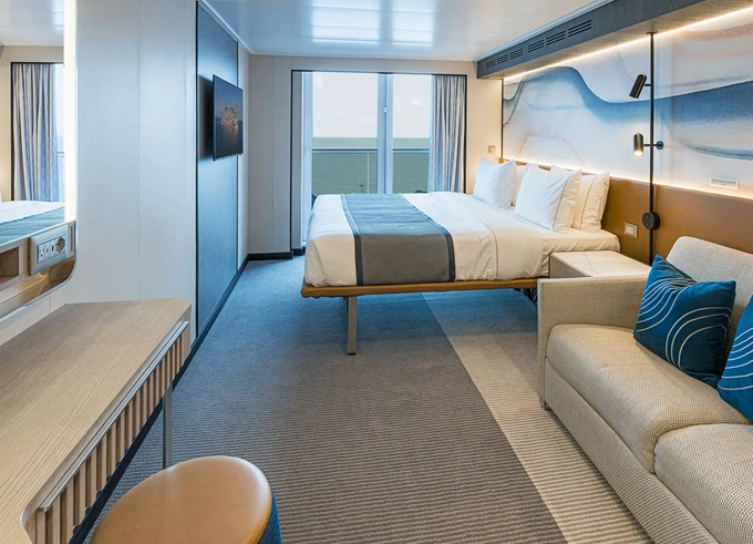 | SI - Suite s velkým balkónem na zádi 24 m² / balkon 19 m². 9. paluba - vzadu. Max 2 osoby. Výhody Suite. | 279 389 Kč 139 695 Kč za osobu | ||