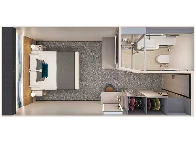 | IB - Kajuta vnitřní 15 m². 9-11. paluba. Max 2 osoby. | 95 825 Kč 47 913 Kč za osobu | ||