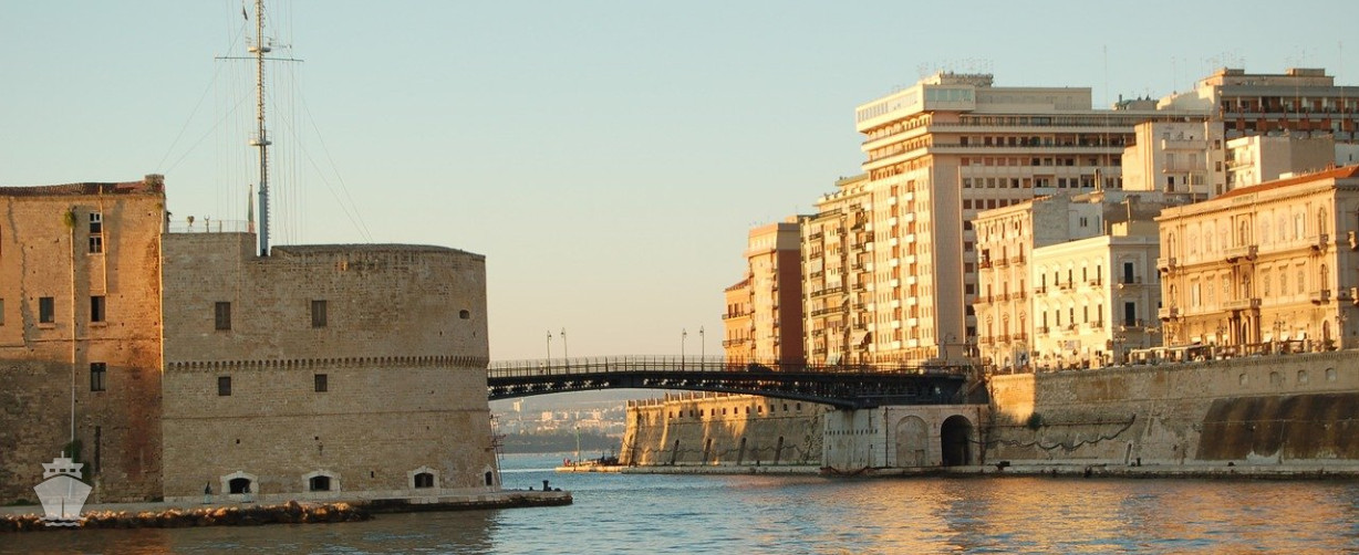Jihoitalský přístav Taranto je hlaví město stejnojmenné provincie v jihoitalské Aplúlii. Tato nová a živá destinace na rozhraní dvou moří je připravená nabídnout kromě krásy a kouzla svého tisíciletého území také skvělé služby pro své hosty. Dominantou města je Aragonský hrad ve čtvrti Borgo Antico. Byl postaven na ochranu města ve starověku a během staletí mnohokrát přestavován. Nyní je domovem námořnictva.